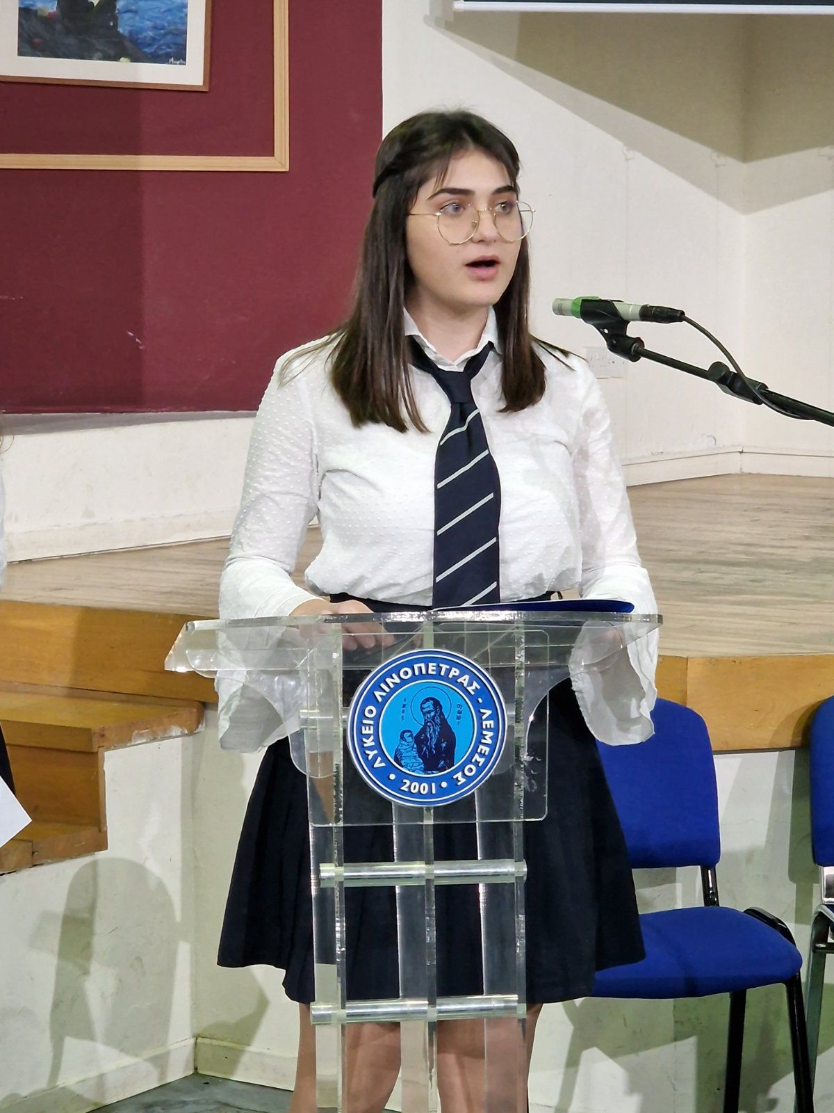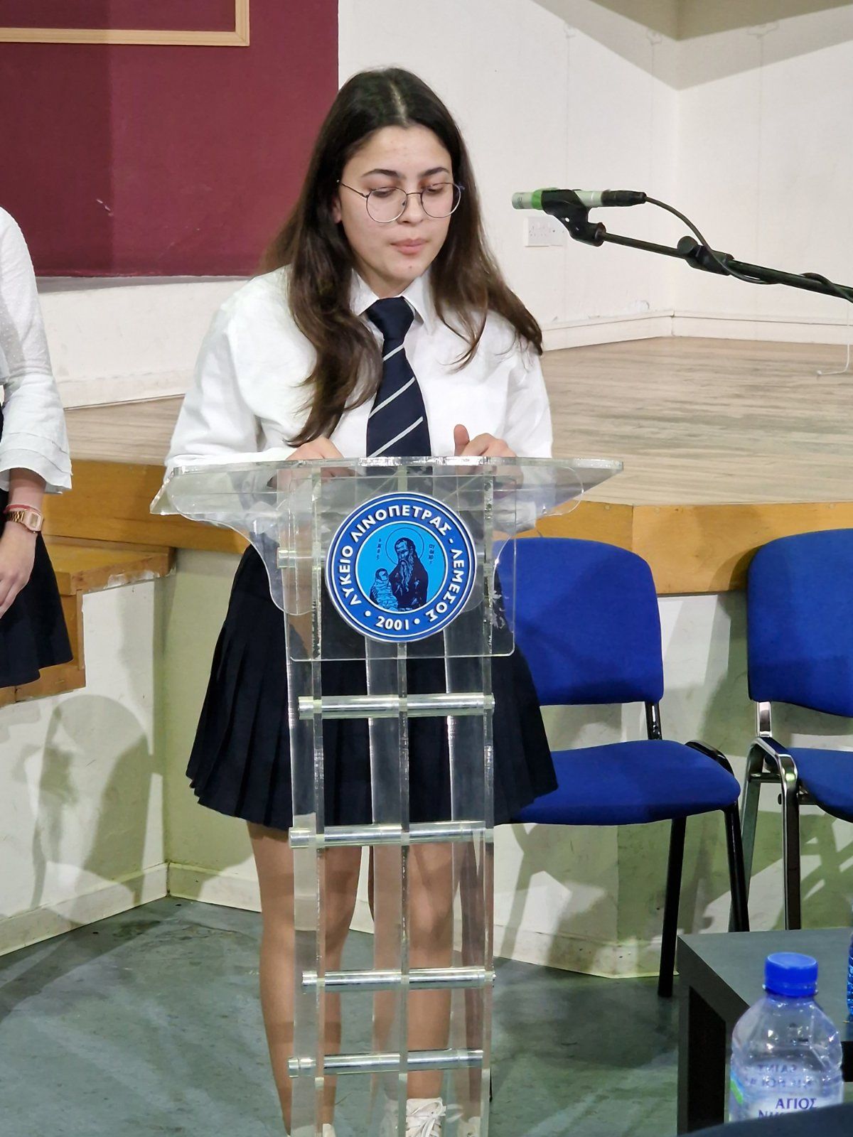 Στην εκδήλωση λόγο είχαν και οι μαθήτριές μας Παντελή Εύα και Βουζούνη Γεωργία που είχαν λάβει μέρος στη δημιουργία του ντοκιμαντέρ, εκφράζοντας την ευγνωμοσύνη τους για όλα όσα έμαθαν, έζησαν και ένιωσαν κατά τη διάρκεια της εμπειρίας αυτής.
