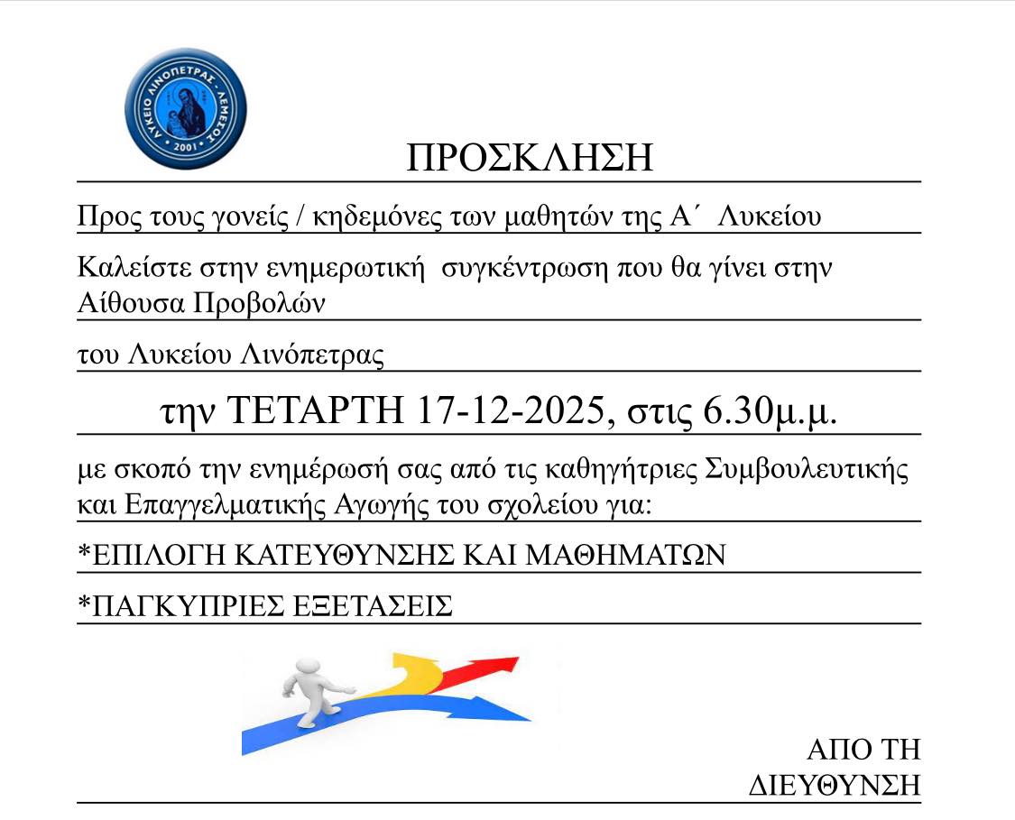Ενημέρωση μαθητών/γονέων/κηδεμόνων για την έναρξη εγγραφών στα Κρατικά Ινστιτούτα Επιμόρφωσης (ΚΙΕ) για τη σχολική χρονιά 2025-2026