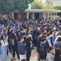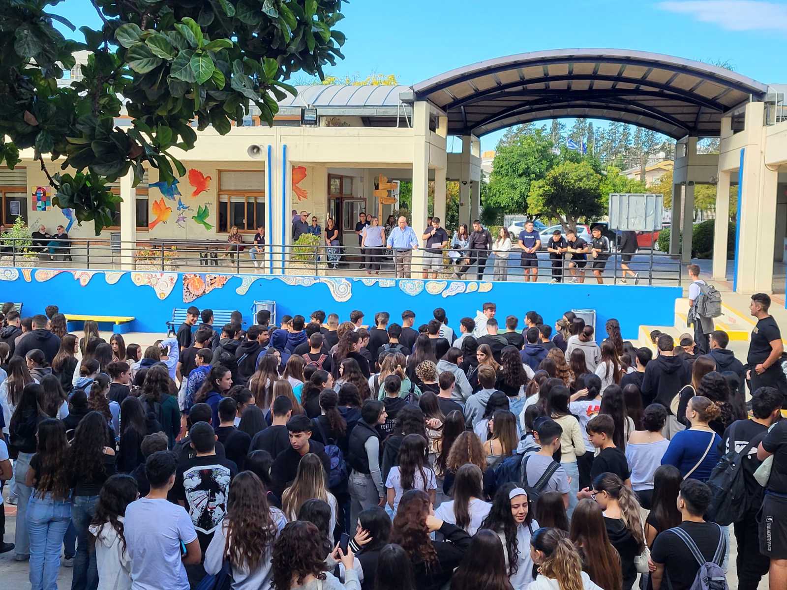 Σήμερα, 14/11/2025, οι μαθητές και μαθήτριες του σχολείου μας συγκεντρώθηκαν στο άτριο όπου εκεί ο πρόεδρος του ΚΜΣ διάβασε το μήνυμα της ΠΣΕΜ. Στη συνέχεια κατευθύνθηκαν προς την περιοχή του Εναερίου για τη διαδήλωση ενάντια στο ψευδοκράτος.