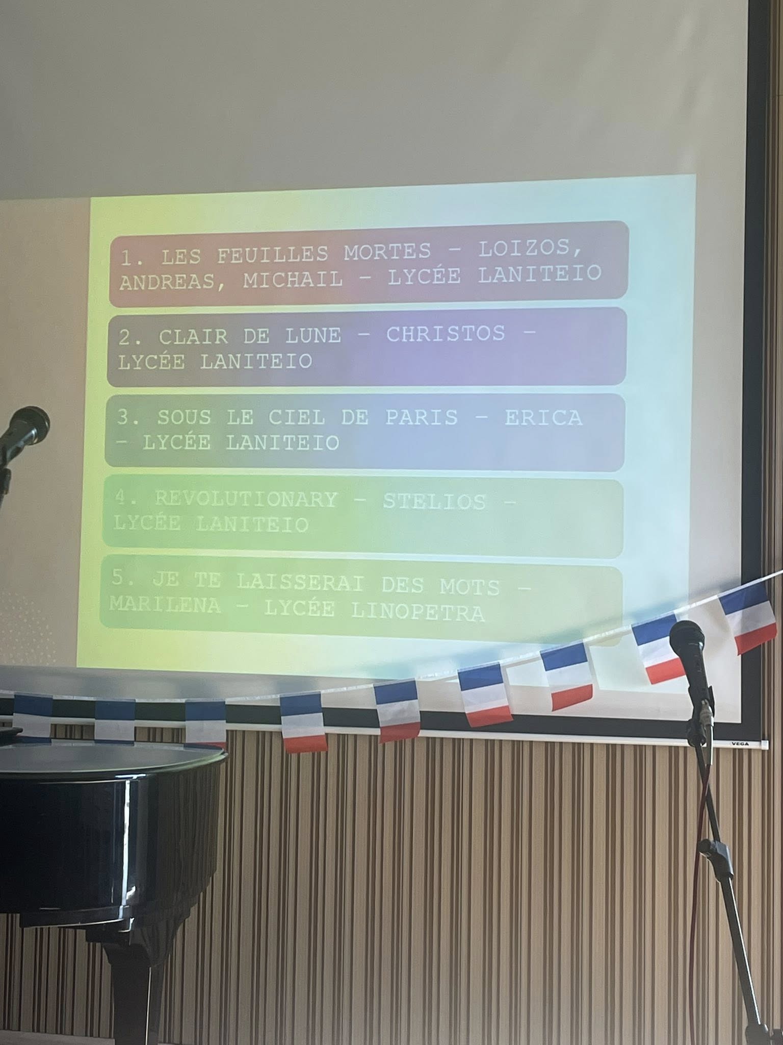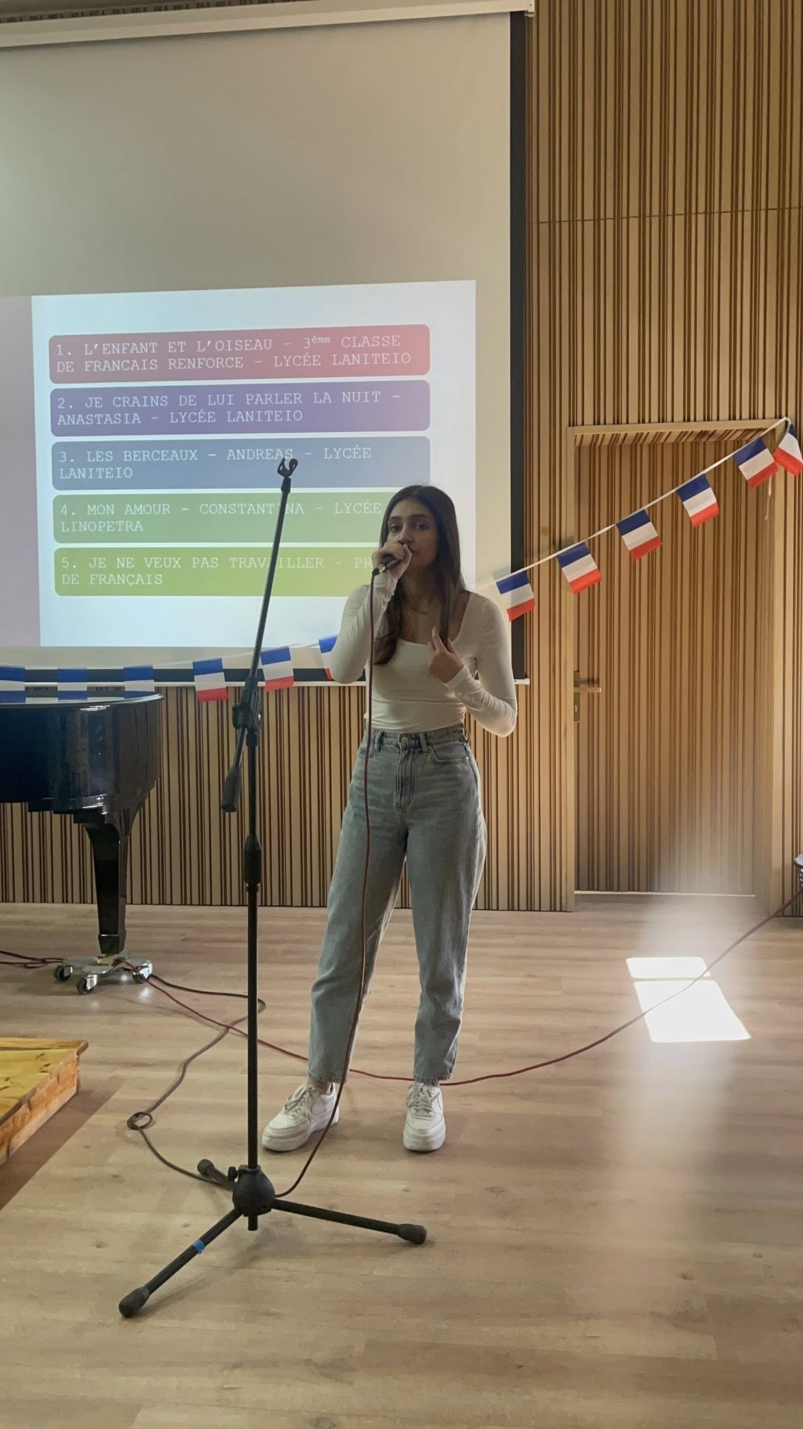 Ομάδα μαθητριών του Λυκείου μας με τη συνοδεία των καθηγητριών γαλλικών κ. Μαρίνα Βασιλείου και κ. Στυλιάνα Καλογήρου φιλοξενήθηκαν σήμερα από το Λανίτειο Λύκειο σε μια όμορφη και μελωδική εκδήλωση στα πλαίσια των εορτασμών της συγκεκριμένης μέρας. Οι μαθήτριές μας Κωνσταντίνα Χρυσοστόμου και Μαριλένα Αθανασιάδου συμμετείχαν σε αυτή την γιορτή τραγουδώντας και παίζοντας πιάνο. Πολλά συγχαρητήρια!