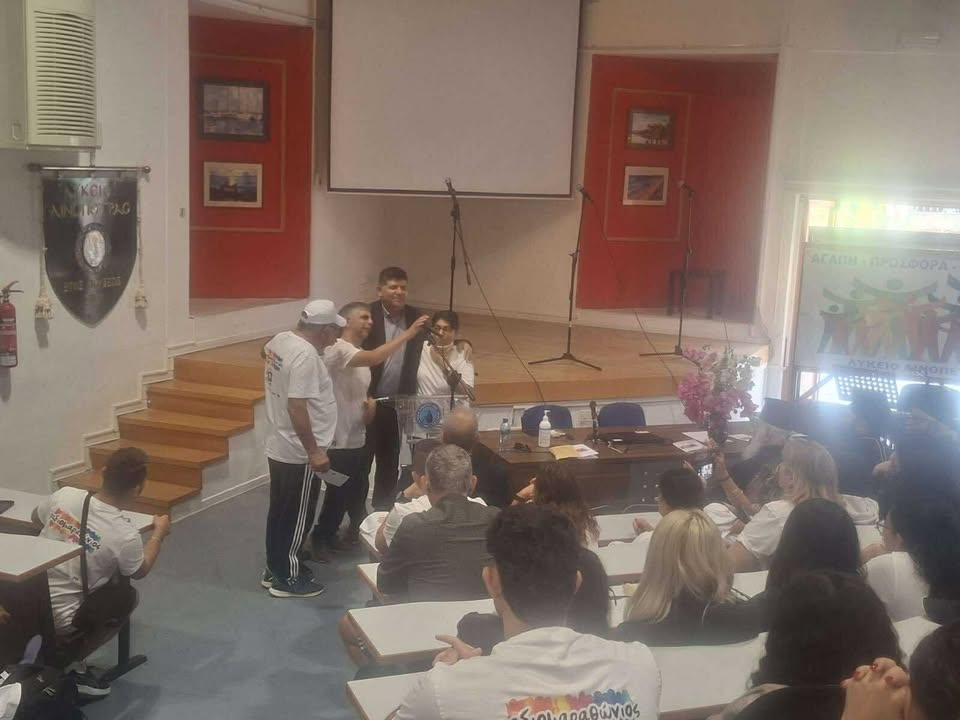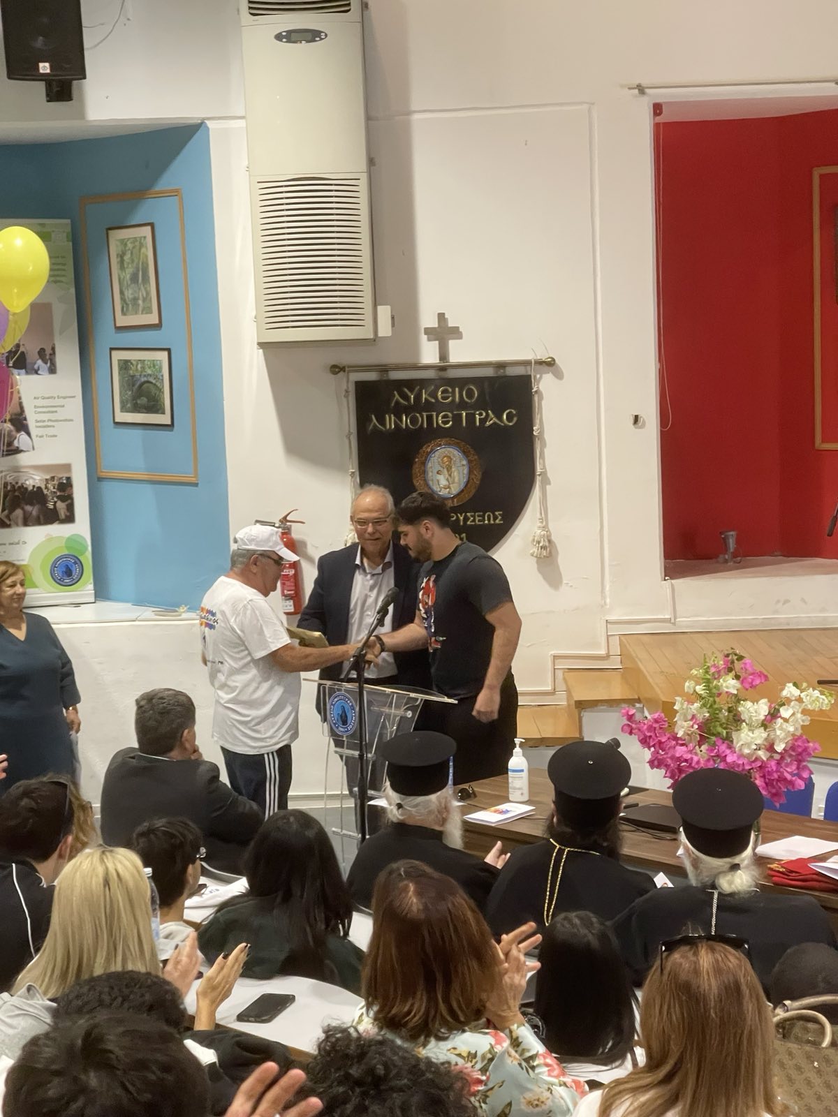 Τέλος, παραδόθηκε από τον πρόεδρο του ΚΜΣ στον υπεύθυνο των πεζοπόρων κ. Ανδρέα Γάλλο χρηματικό ποσό το οποίο συγκεντρώθηκε από όλη τη Σχολική Μονάδα. Επίσης, ο κ. Κυριάκος Ξυδιάς, δήμαρχος Αμαθούντας, προσέφερε και αυτός με τη σειρά του χρηματικό ποσό για τον Ραδιομαραθώνιο.