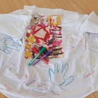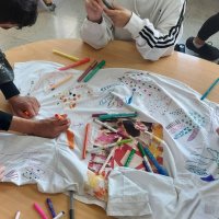" Έχουν άραγε δικαίωμα τα παιδιά στην έκφραση; Στην συμπερίληψη, στη διαφορετικότητα και στη φιλία; Πώς; Γνωρίζουν τον εαυτό τους; Παρατηρούν ή ακολουθούν τους άλλους; Μία ημέρα ανακάλυψης του εαυτού μας και των άλλων μέσα από "απλές ασκήσεις γνωριμίας" και με συμβολισμούς "πλάτης" κι " αγκαλιάς". Τελικά ποιο συμπέρασμα βγάλαμε από το βιβλίο του Peter Reynolds "Είμαι ένας/ μία "; Είμαι ο ένας; Είμαι μόνος; Είμαι ο μόνος; Σίγουρα πάντως ανακαλύψαμε πως κάνουμε ένα βήμα προς τη ζωή ή πως βγάζουμε ένα τούβλο από τον τοίχο που μας χωρίζει. Μια ακόμη ιστορία, αυτή του λευκού πουκαμίσου με την κομματιασμένη καρδιά, έργο άλλων παιδιών, μας έδωσε την ευκαιρία να μοιραστούμε κάτι που μας πλήγωσε, για να νιώσουμε έπειτα γύρω μας τα χέρια των νέων μας φίλων να μας αγγίζουν απαλά λέγοντας : είμαι δίπλα σου! Μα λένε τα πουκάμισα ιστορίες; Λένε λέει...εμεις προσθέσαμε και τις δικές μας. Τα χέρια γέμισαν με χρώματα το λευκό πουκάμισο, με ονόματα και σχέδια. Τώρα πια το πουκάμισο αυτό ξέρουμε πότε και γιατί θα μας αγκαλιάζει. Κλείσαμε με " Το αγόρι, ο τυφλοπόντικας, η αλεπού και το άλογο " του Τσαρλι Μακεσι / ΕΚΔΟΣΕΙΣ ΠΑΠΑΔΟΠΟΥΛΟΣ διαβάσαμε ο ένας στον άλλο και αφήσαμε τον συγγραφέα να μας συνεπάρει στον κόσμο των τόσο διαφορετικών αλλά και αλληλο-συμπληρούμενων φίλων. Ευχαριστώ όλους τους μαθητές, τις μαθήτριες, που μπήκαν τόσο ενεργά και με τόσο πάθος στη σημερινή δράση. Μαρία τι να πω για σένα...ευγνώμων για όλα ! Ελπίζω ότι όλοι κάποτε θα κατανοήσουμε όπως τραγουδήσαμε στο τέλος, ότι, " Όλα τα γεμίζουμε κι όλα τα αδειάζουμε εμείς"!
